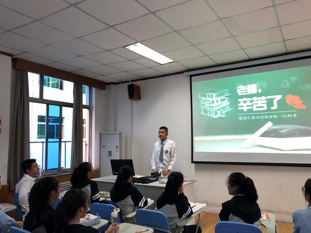 2019年9月10日上午,初三乙班在培301教室召开主题班会---懂得感恩,老师您辛苦了!