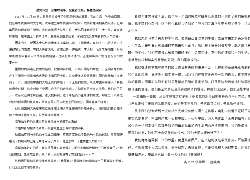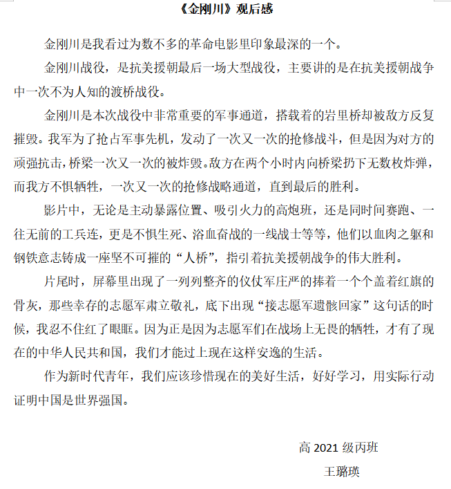 通过观看红色电影,使同学们铭记历史,致敬先烈,感恩生活,多做贡献,在实现中华民族伟大复兴的征程上,以扎实的脚步去追逐伟大梦想,用勤劳的双手去开创辉煌未来!