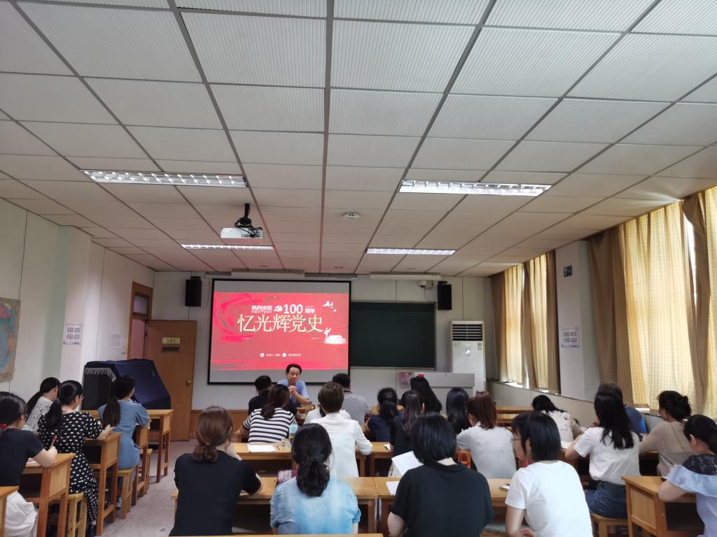 2021年7月9日,附中分管院长侯颉为附中全体教职工讲授党课。 党课主题为《忆光辉党史》,
