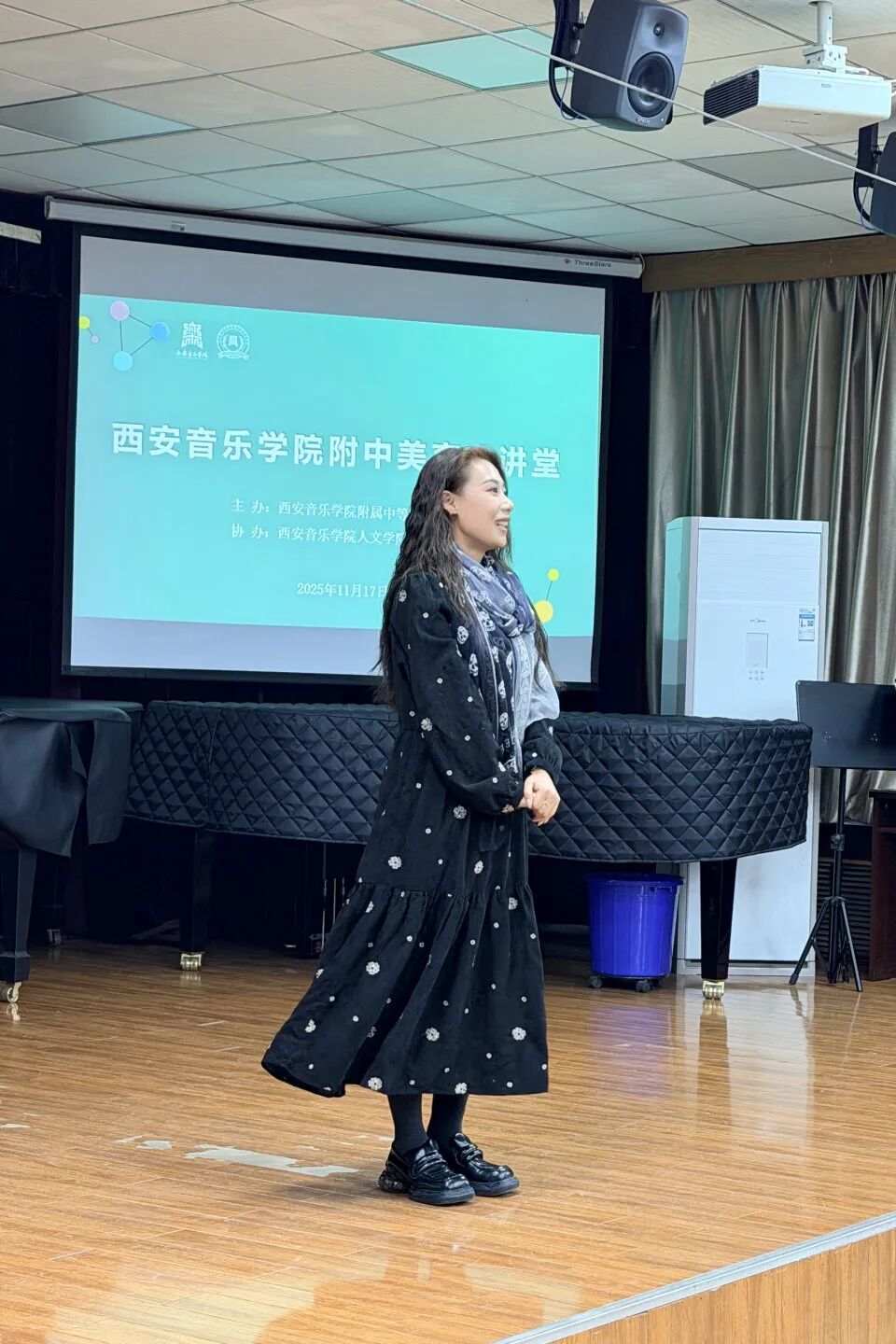 为弘扬中华优秀传统文化,推进新时代学校美育工作,11月17日下午,由西音附中主办、西安音乐学院人文学院协办的“西安音乐学院附中美育大讲堂”第一期正式开讲。本期讲座特邀江苏省演艺集团昆剧院二级演员孙伊君,作题为“如花美眷——昆曲旦行表演特色”的专题讲座。附中师生及人文学院师生共同聆听了本次讲座。活动现场,昆曲艺术的细腻典雅与少年学子的热情好奇交织出一幅生动美育画卷。 美育大讲堂: 开启传统文化新体验